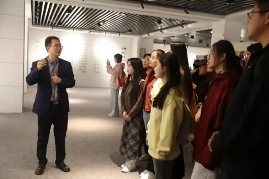 李晓峰老师带领准教师协会的同学们观展,就具有代表性的作品发表了个人的见解。观展前,李老师强调了书法的意义和价值,他指出,书法不仅是一种艺术形式,更是一种文化传承和精神寄托。通过学习书法,我们可以更好地了解中 华文化的历史和精神内涵,培养自己的审美情趣和人文素养。同时,书法也是一种修身养性的重要方式,可以帮助我们平静心灵、陶冶情操。他指出广大同学在 鉴赏书法作品时应对其艺术格调、传统功力的把握、应变能力、作品外在形式、 文字运用和相关素养等方面多加关注。