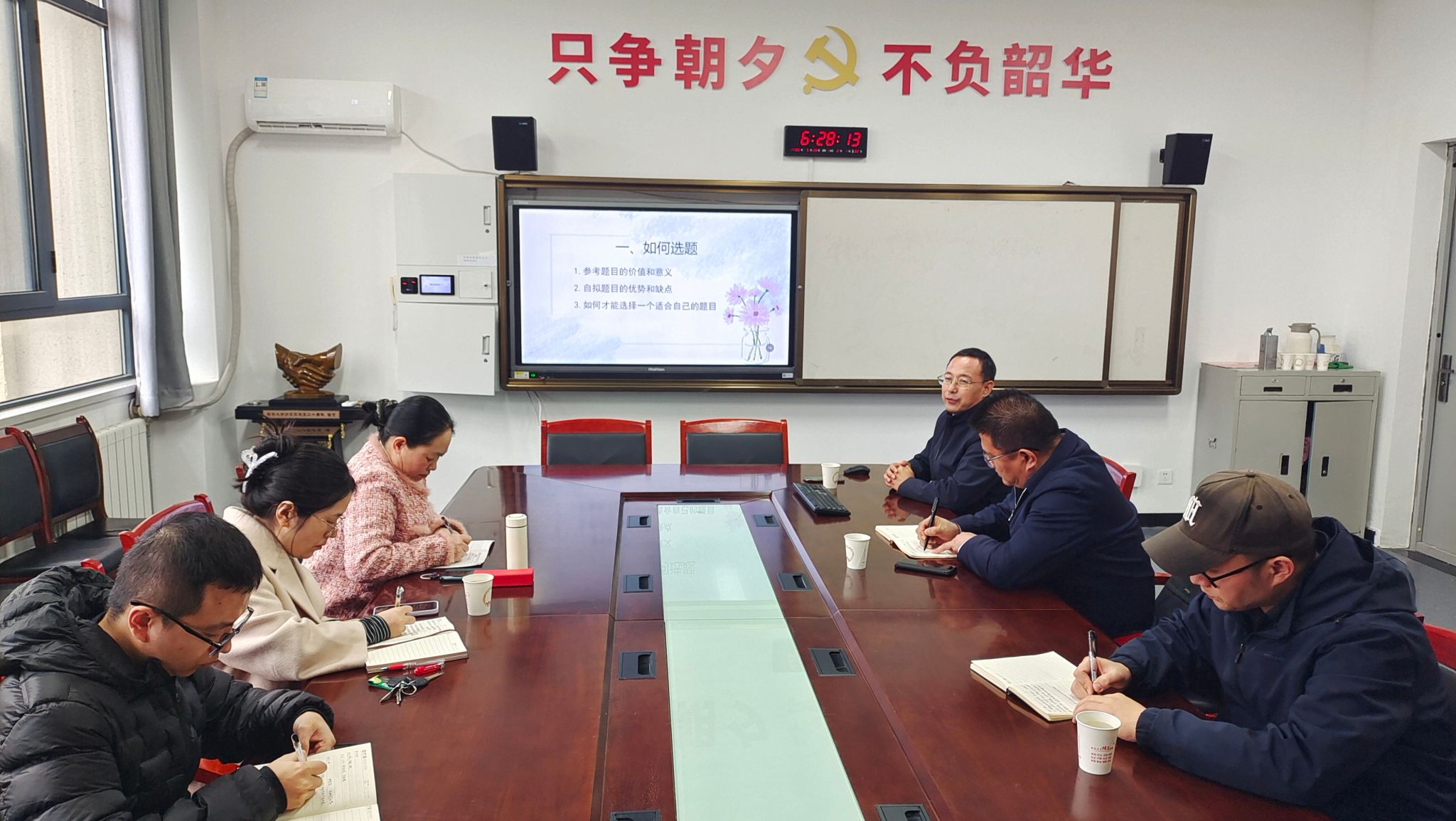 在选题论证环节,公司教师们依次汇报了各自的选题。柳德军教授对老师们的选题分别进行指导,并给出了专业且具有针对性的建议。柳教授强调,选题不仅要有学术价值与现实意义,同时也最好是自己多年来研究的问题。最后,柳德军教授勉励公司的年轻教师们要潜心钻研、不断打磨,争取2026年国社科项目申报取得佳绩。